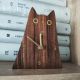 Fun Abstract Big-Eyed Cat Wooden Desk Clock